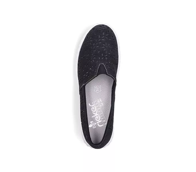 Fekete színű Rieker N0955-00 női cipő. Felsőrészének az anyaga: műbőr felső