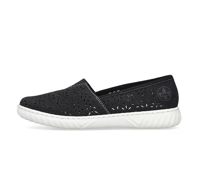 Fekete színű Rieker N0955-00 női cipő. Felsőrészének az anyaga: műbőr felső