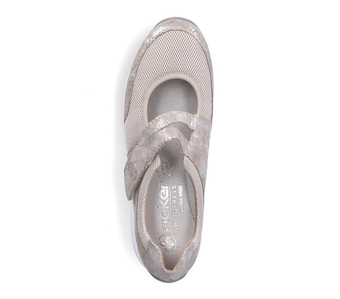 Rózsaszín színű Rieker N1161-90 női cipő. Felsőrészének az anyaga: bőr talpbetét