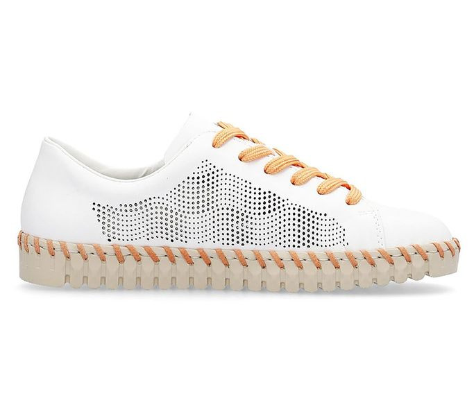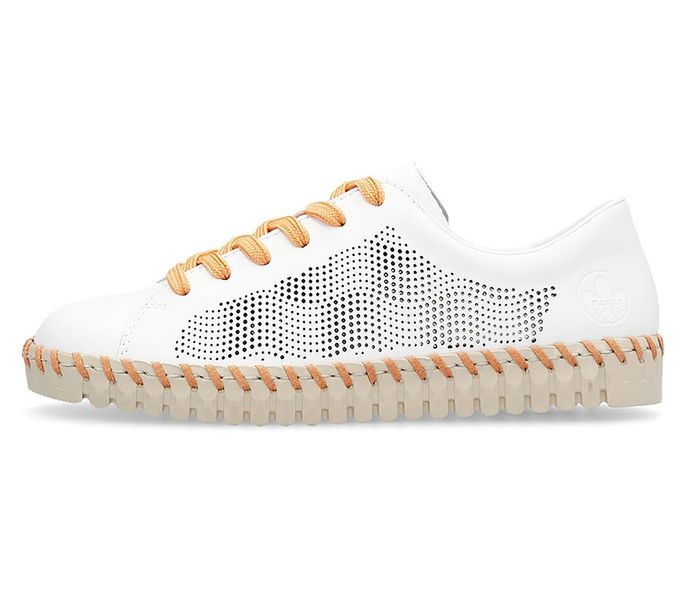 Fehér színű Rieker N1900-80 női cipő. Felsőrészének az anyaga: bőr felső