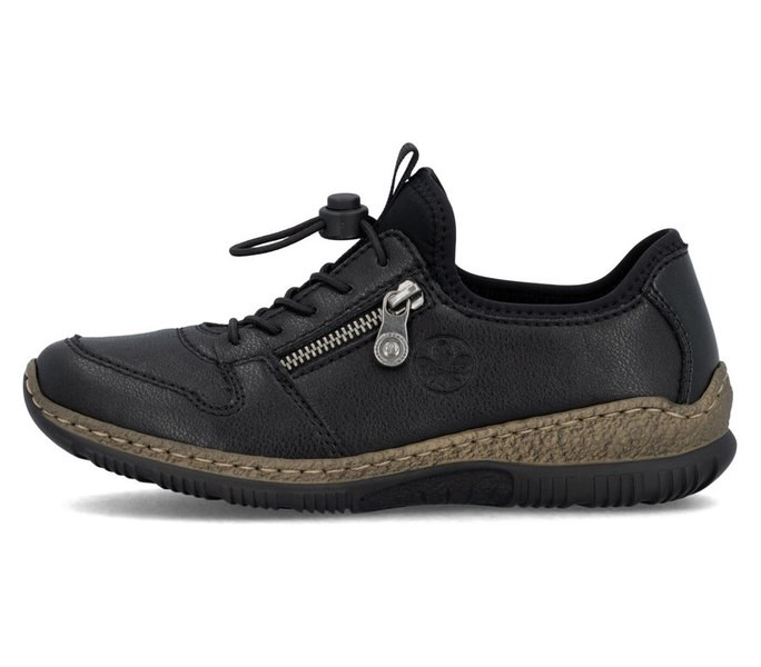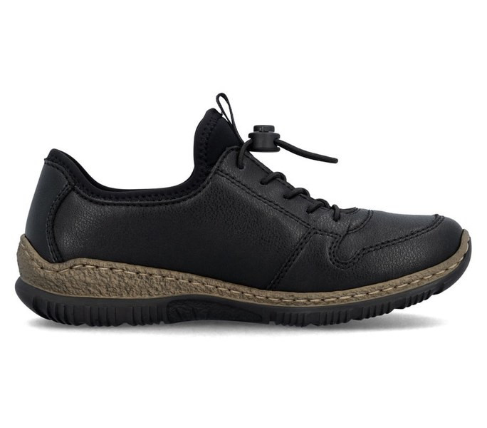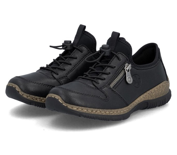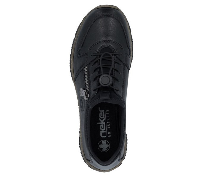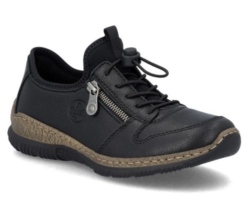 Fekete színű Rieker N32G0-00 női cipő. Felsőrészének az anyaga: Ekológikus bőr/bőr felső