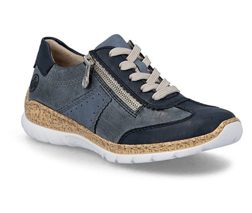 Kék színű Rieker N4221-14 női cipő. Felsőrészének az anyaga: Ekológikus bőr/textil felső