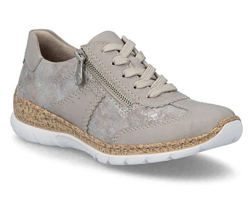 Szürke színű Rieker N4221-90 női cipő. Felsőrészének az anyaga: Ekológikus bőr/textil felső
