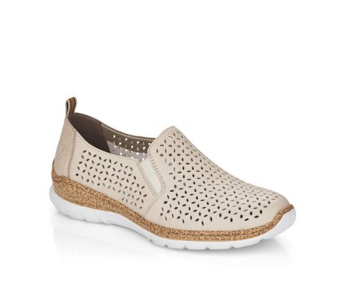 Bézs színű Rieker N4251-60 női cipő. Felsőrészének az anyaga: textil talpbetét