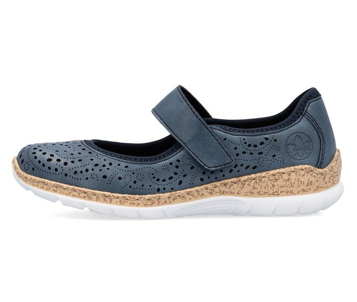 Kék színű Rieker N4299-14 női cipő. Felsőrészének az anyaga: Ekológikus bőr/textil felső