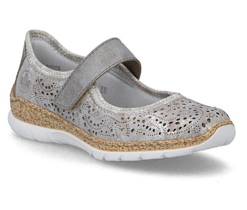ezüst színű Rieker N4299-90 női cipő. Felsőrészének az anyaga: Ekológikus bőr/textil felső
