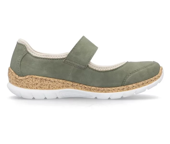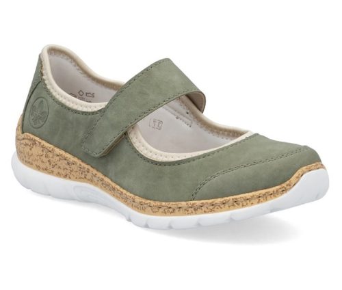 Zöld színű Rieker N42B0-52 női cipő. Felsőrészének az anyaga: Ekológikus bőr/textil felső