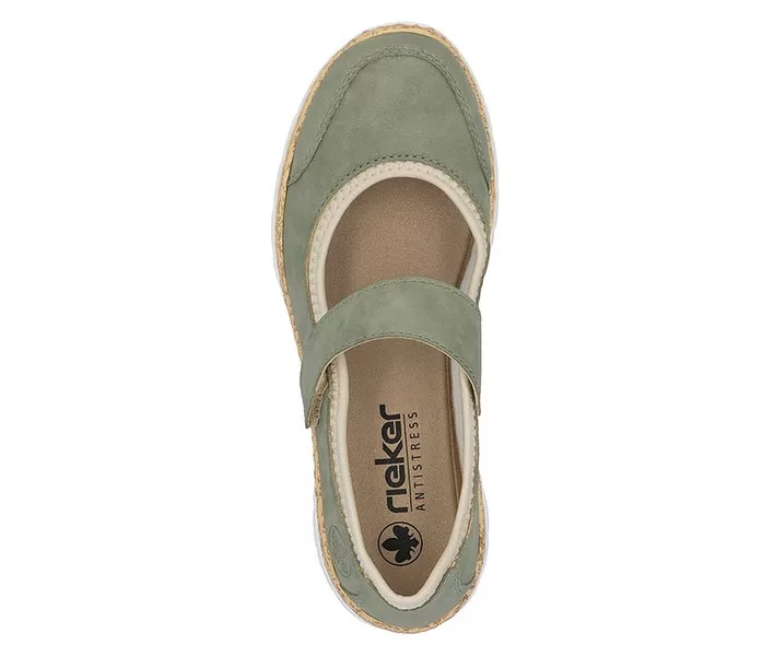 Zöld színű Rieker N42B0-52 női cipő. Felsőrészének az anyaga: Ekológikus bőr/textil felső