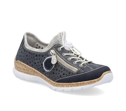 kék színű Rieker N42P6-14 női cipő. Felsőrészének az anyaga: ekológikus bőr textil talpbetét
