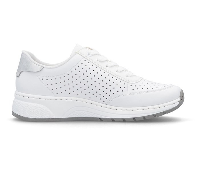 Fehér színű Rieker N6507-80 női cipő. Felsőrészének az anyaga: Ekológikus bőr/textil felső