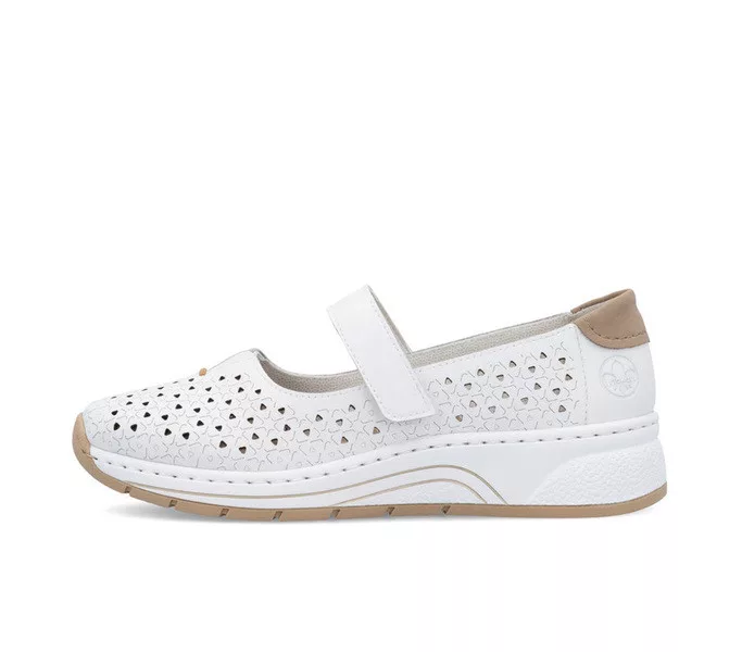 fehér színű Rieker N6553-80 női cipő. Felsőrészének az anyaga: bőr felsőrész