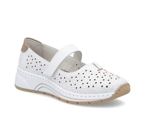 fehér színű Rieker N6553-80 női cipő. Felsőrészének az anyaga: bőr felsőrész