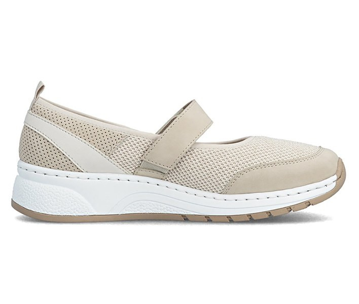 Bézs színű Rieker N6554-60 női cipő. Felsőrészének az anyaga: Ekológikus bőr/textil felső
