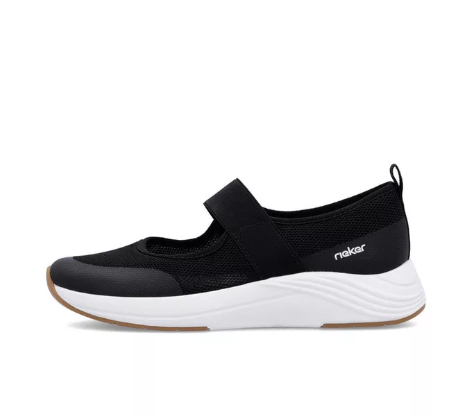 Fekete színű Rieker N8551-00 női cipő. Felsőrészének az anyaga: Felsőrész:textil