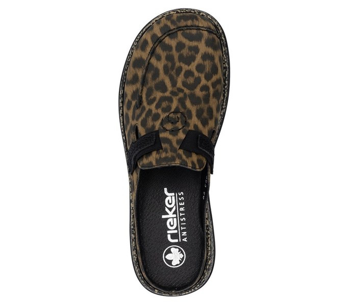 Barna színű Rieker 46393-90 női papucs. Felsőrészének az anyaga: Ekológikus bőr felső