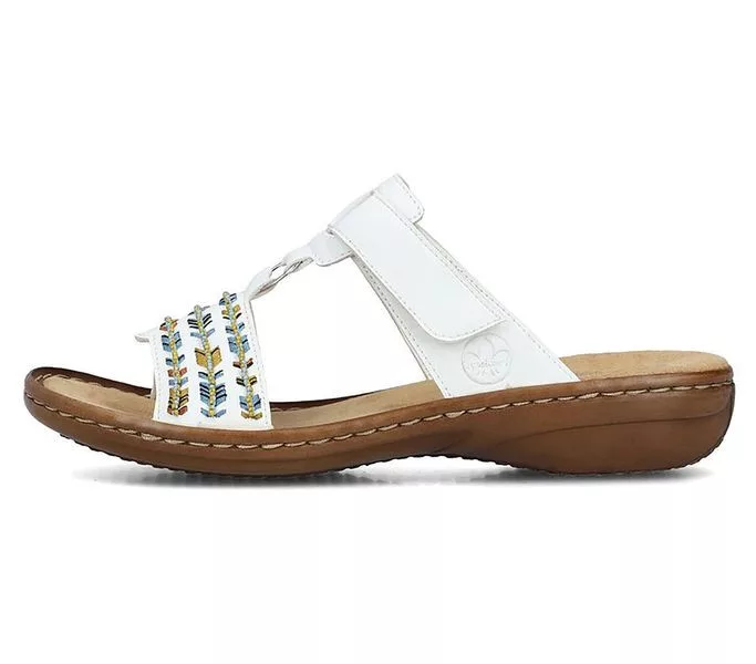 Fehér színű Rieker 60867-80 női papucs. Felsőrészének az anyaga: műbőr felső