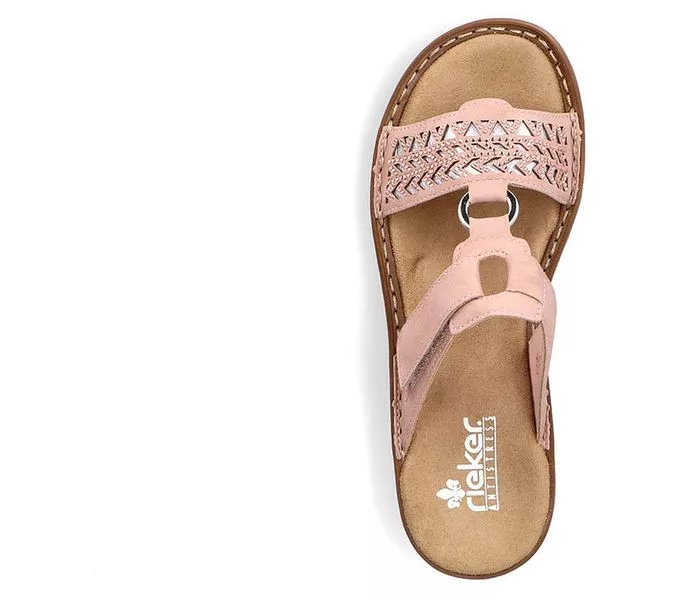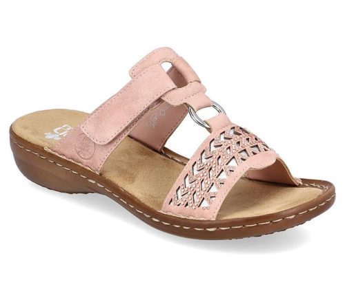 Rózsaszín színű Rieker 60887-31 női papucs. Felsőrészének az anyaga: műbőr felső