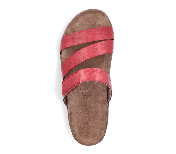piros színű Rieker 61450-33 női papucs. Felsőrészének az anyaga: bőr felsőrész