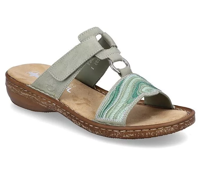 Zöld színű Rieker 62829-52 női papucs. Felsőrészének az anyaga: műbőr felső