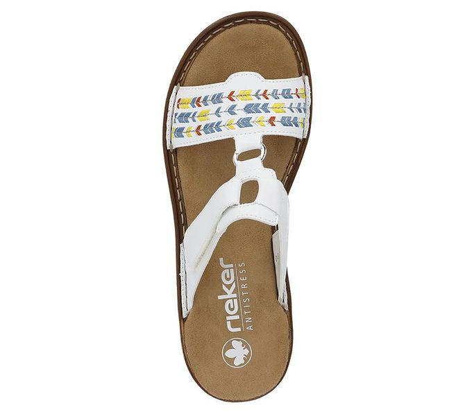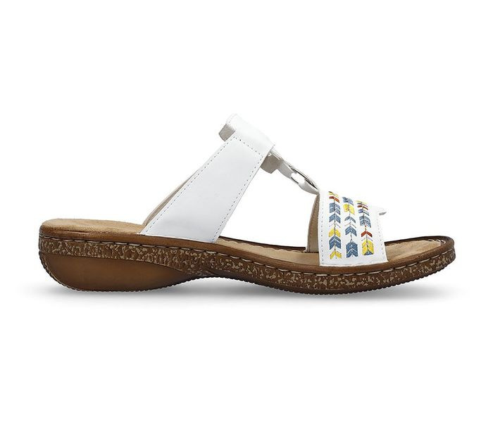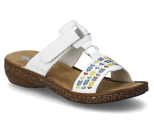 Fehér színű Rieker 62862-80 női papucs. Felsőrészének az anyaga: műbőr felső