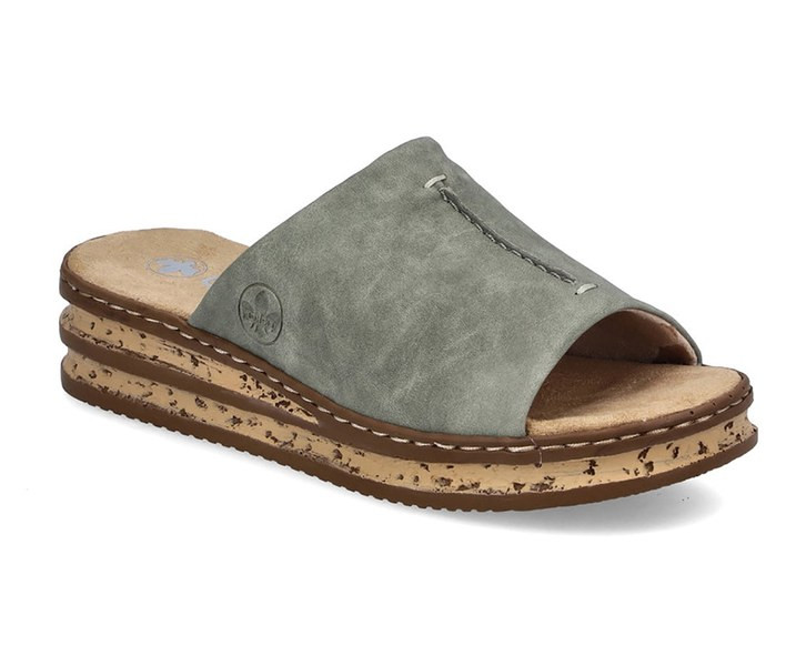 Zöld színű Rieker 62905-53 női papucs. Felsőrészének az anyaga: Ekológikus bőr felső