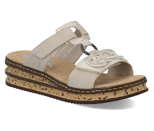 Bézs színű Rieker 62936-60 női papucs. Felsőrészének az anyaga: Ekológikus bőr felső