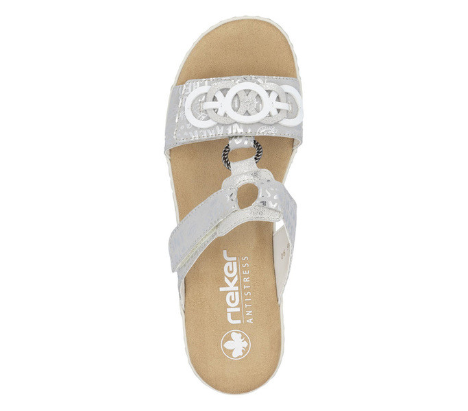Szürke színű Rieker 62936-90 női papucs. Felsőrészének az anyaga: Ekológikus bőr felső