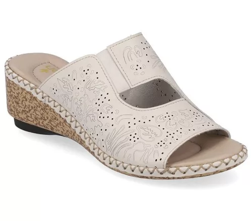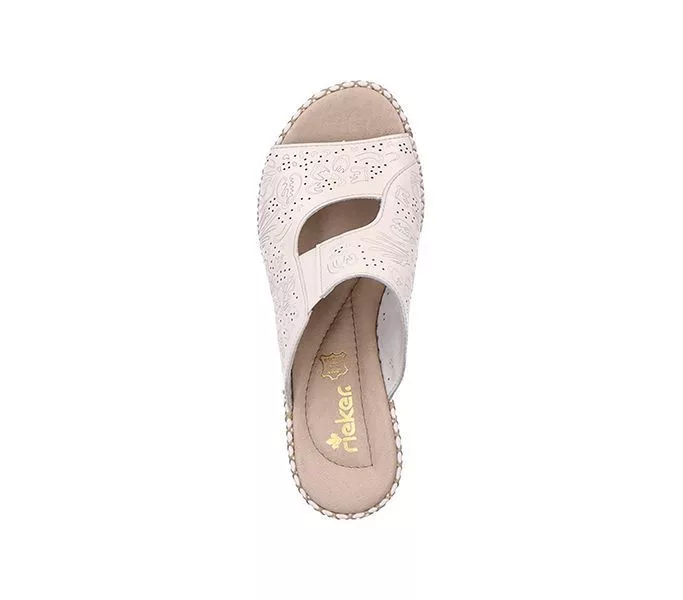 Fehér színű Rieker 66191-60 női papucs. Felsőrészének az anyaga: bőr felső