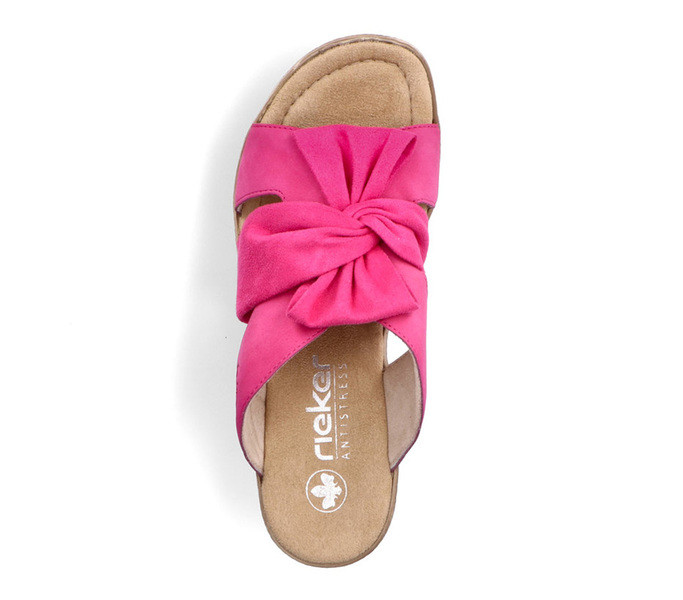 rózsaszín színű Rieker 68789-31 női papucs. Felsőrészének az anyaga: textil felsőrész
