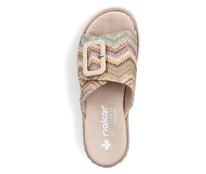 Barna színű Rieker 69253-91 női papucs. Felsőrészének az anyaga: textil felső