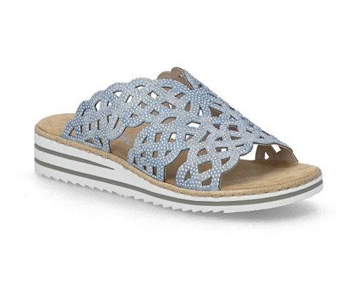 Kék színű Rieker V0689-12 női papucs. Felsőrészének az anyaga: