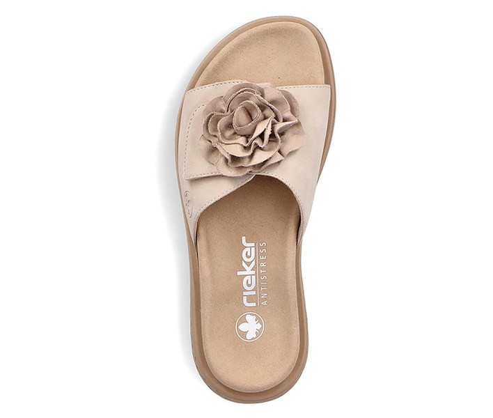 Barna színű Rieker V1562-62 női papucs. Felsőrészének az anyaga: Ekológikus bőr felső