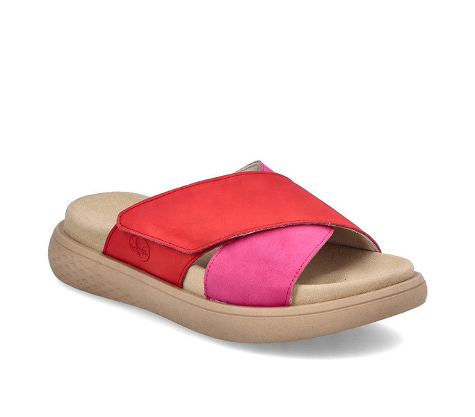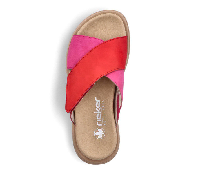 piros színű Rieker V1579-33 női papucs. Felsőrészének az anyaga: textil felsőrész textil talpbetét