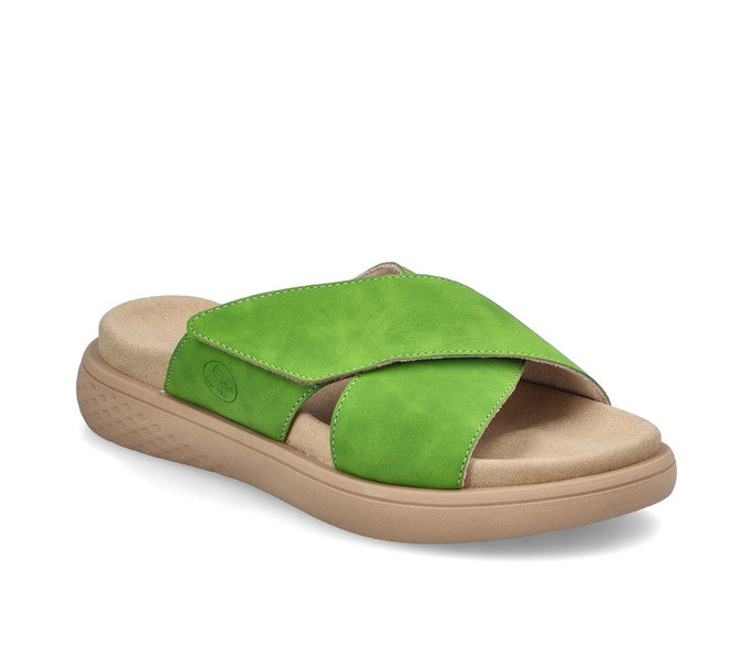 zöld színű Rieker V1579-52 női papucs. Felsőrészének az anyaga: textil felsőrész textil talpbetét