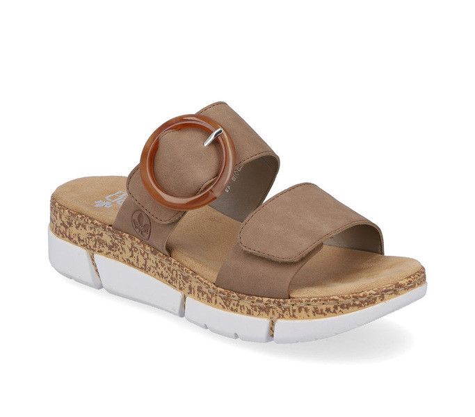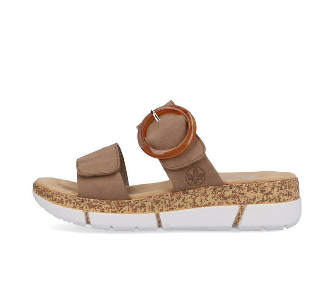 Bézs színű Rieker V2392-62 női papucs. Felsőrészének az anyaga: textil talpbetét