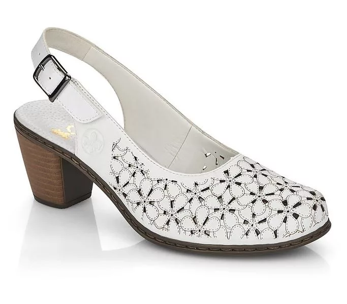 Fehér színű Rieker 40981-80 női szandál. Felsőrészének az anyaga: bőr felső