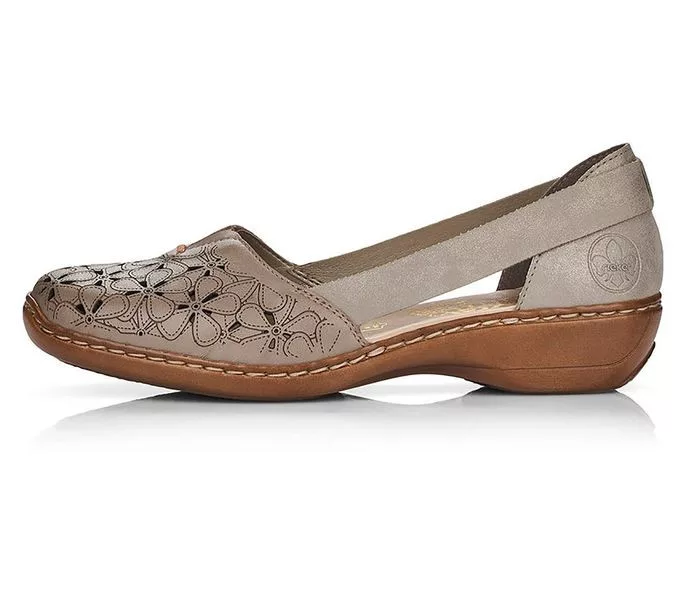 Arany színű Rieker 41356-64 női szandál. Felsőrészének az anyaga: bőr felső