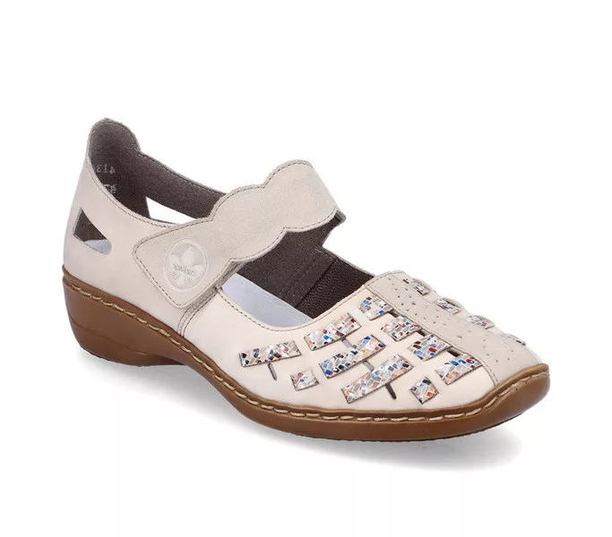 Bézs színű Rieker 41369-60 női szandál. Felsőrészének az anyaga: bőr felső