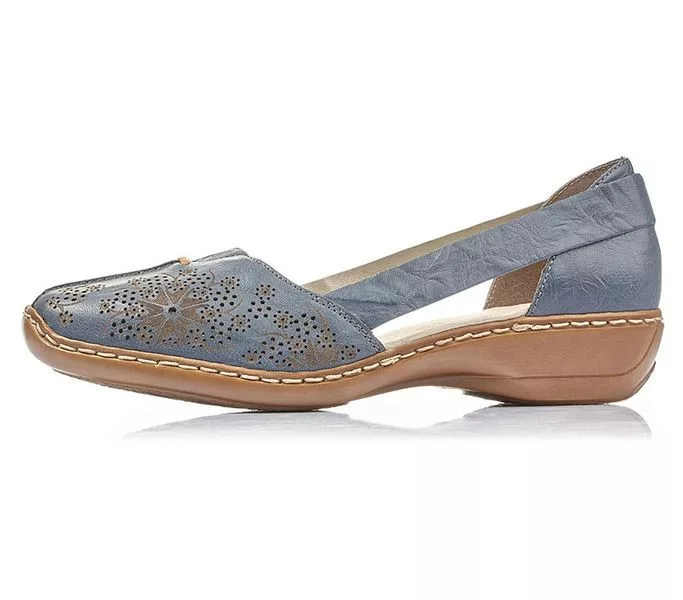 Kék színű Rieker 41396-12 női szandál. Felsőrészének az anyaga: bőr felső