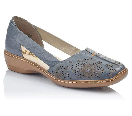 Kék színű Rieker 41396-12 női szandál. Felsőrészének az anyaga: bőr felső