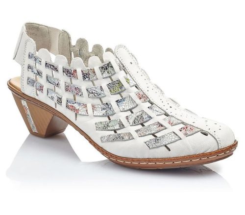 Fehér színű Rieker 46778-80 női szandál. Felsőrészének az anyaga: bőr felső
