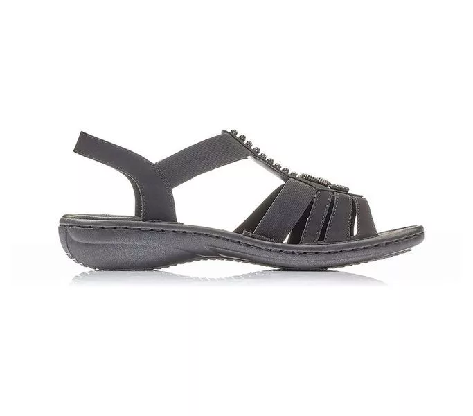 Fekete színű Rieker 60806-00 női szandál. Felsőrészének az anyaga: Ekológikus bőr felső