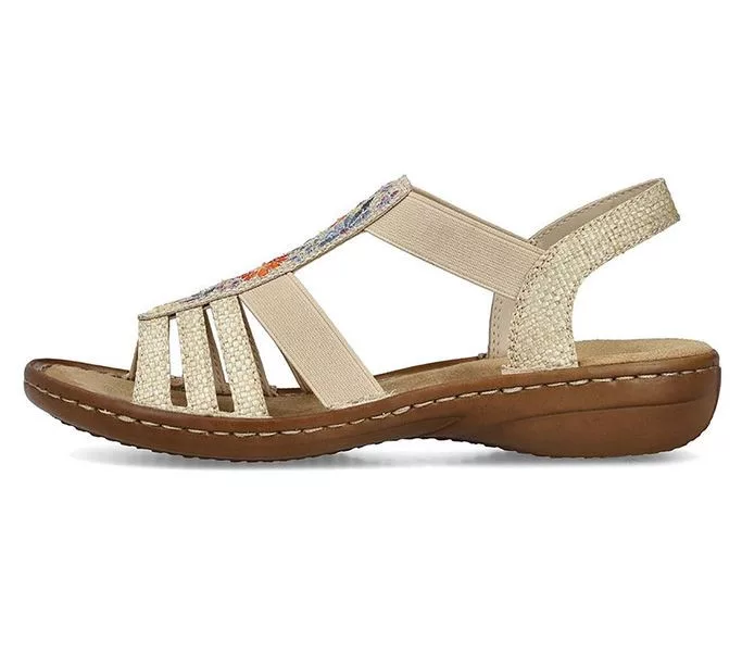 Bézs színű Rieker 60808-60 női szandál. Felsőrészének az anyaga: Textil felső