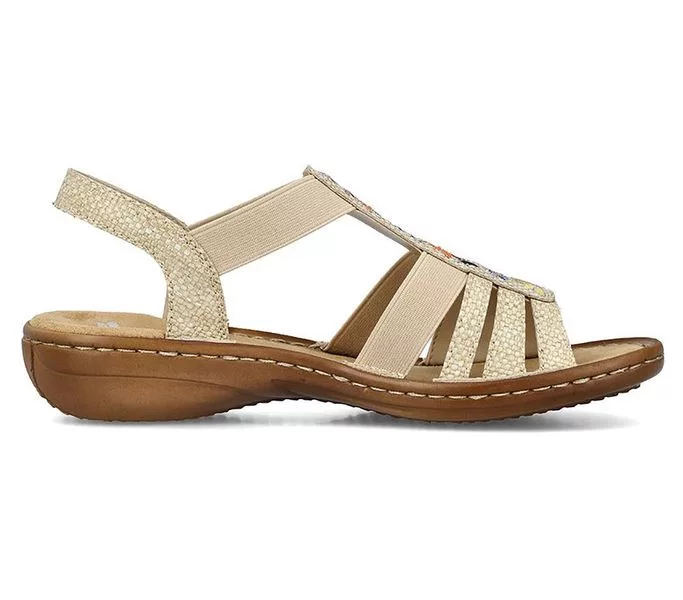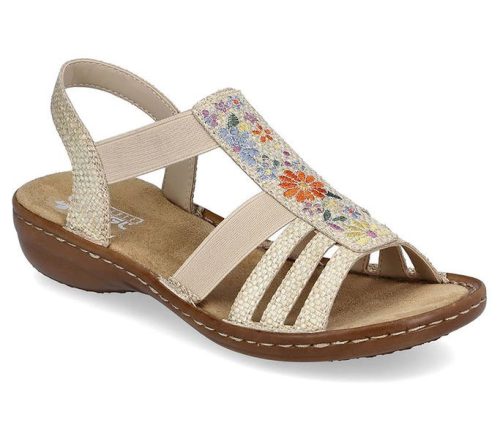 Bézs színű Rieker 60808-60 női szandál. Felsőrészének az anyaga: Textil felső