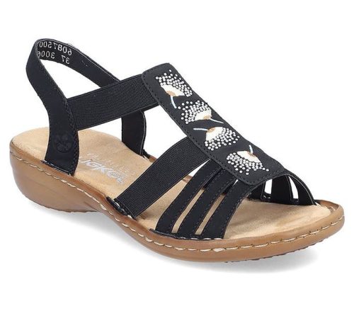 Fekete színű Rieker 60875-00 női szandál. Felsőrészének az anyaga: műbőr felső