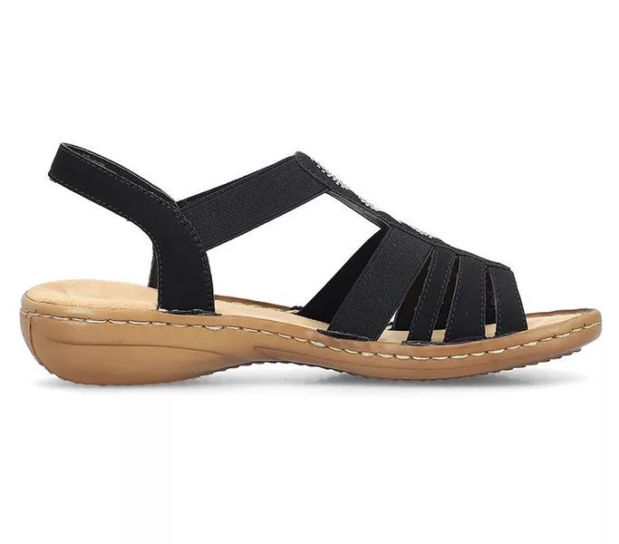 Fekete színű Rieker 60875-00 női szandál. Felsőrészének az anyaga: műbőr felső