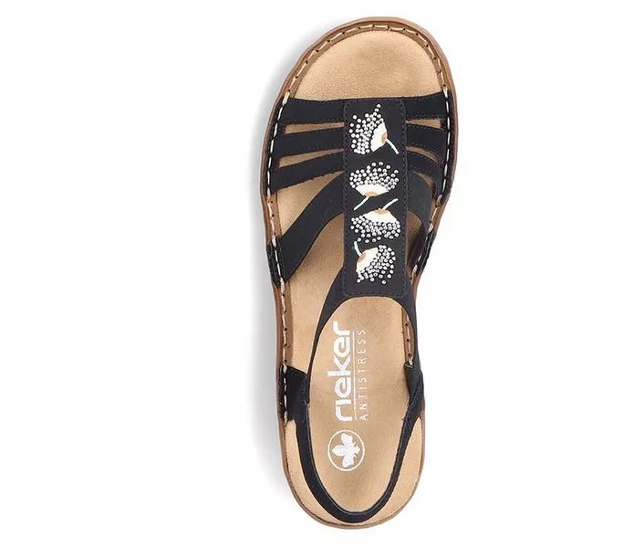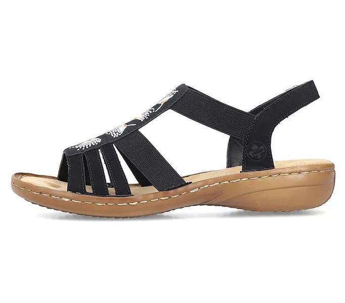 Fekete színű Rieker 60875-00 női szandál. Felsőrészének az anyaga: műbőr felső