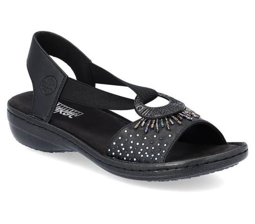 Fekete színű Rieker 60880-00 női szandál. Felsőrészének az anyaga: műbőr felső