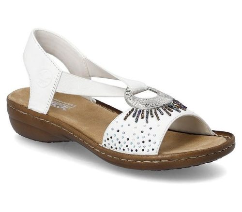 Fehér színű Rieker 60880-80 női szandál. Felsőrészének az anyaga: műbőr felső