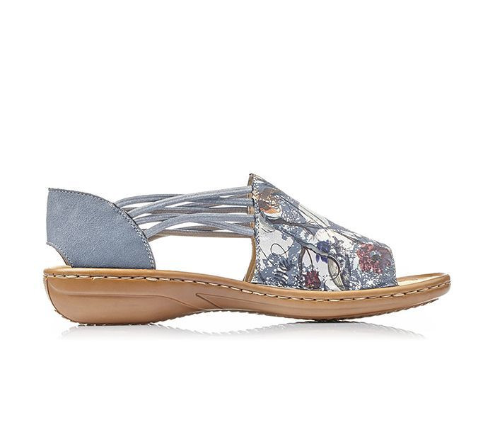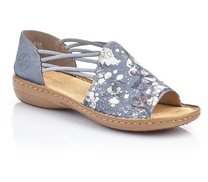 Kék színű Rieker 608F1-91 női szandál. Felsőrészének az anyaga: műbőr felső